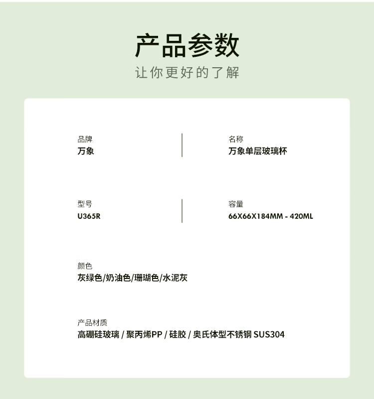 商品名称:万象 单层玻璃杯 420ml U365R