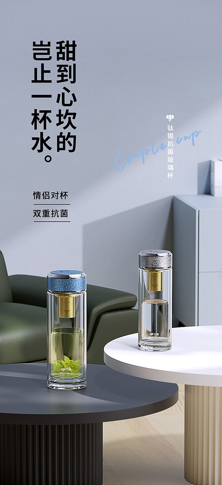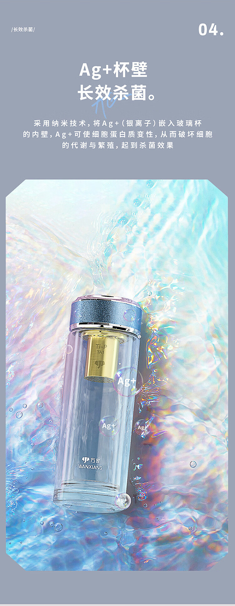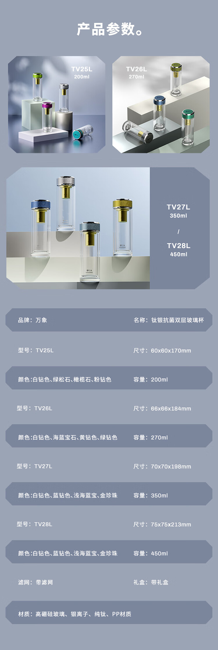 商品名称:万象 钛银抗菌双层玻璃杯 210ml TV25L
