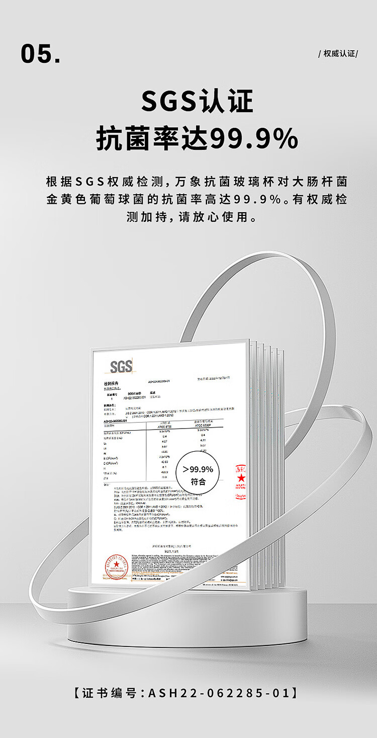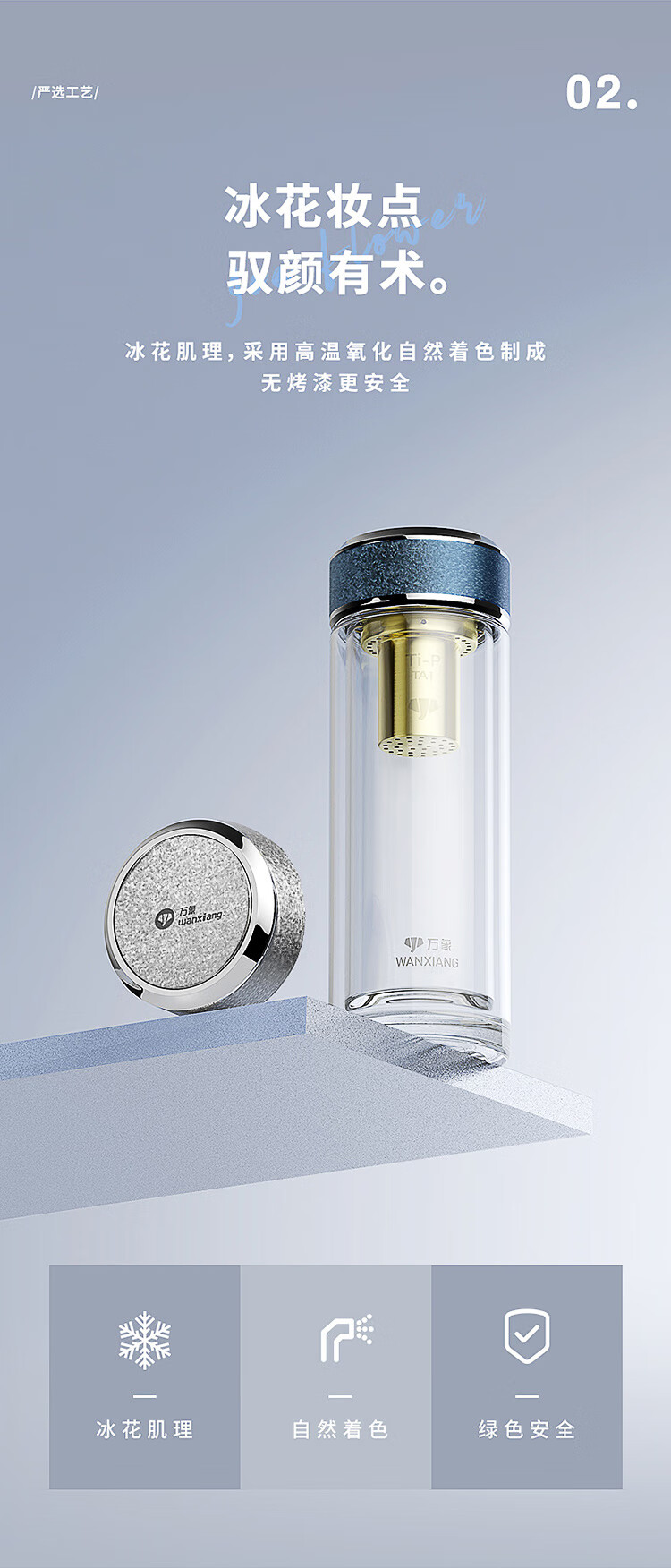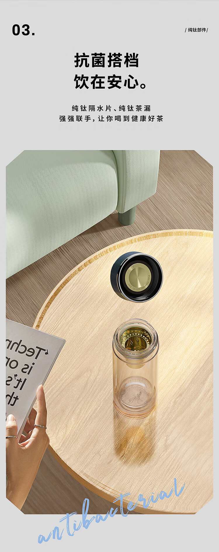 商品名称:万象 钛银抗菌双层玻璃杯 210ml TV25L