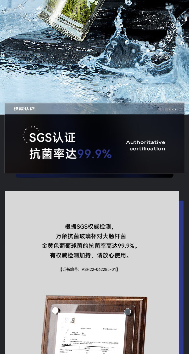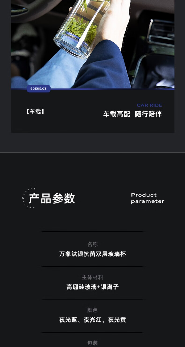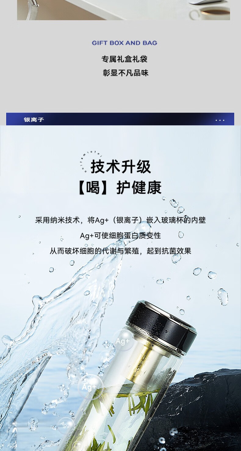 商品名称:万象 钛银抗菌双层玻璃杯 200ml TV35L