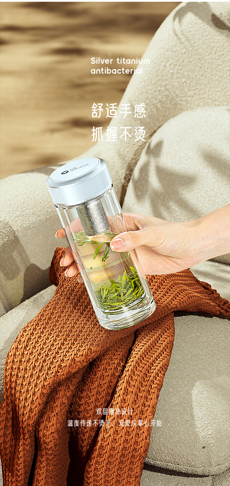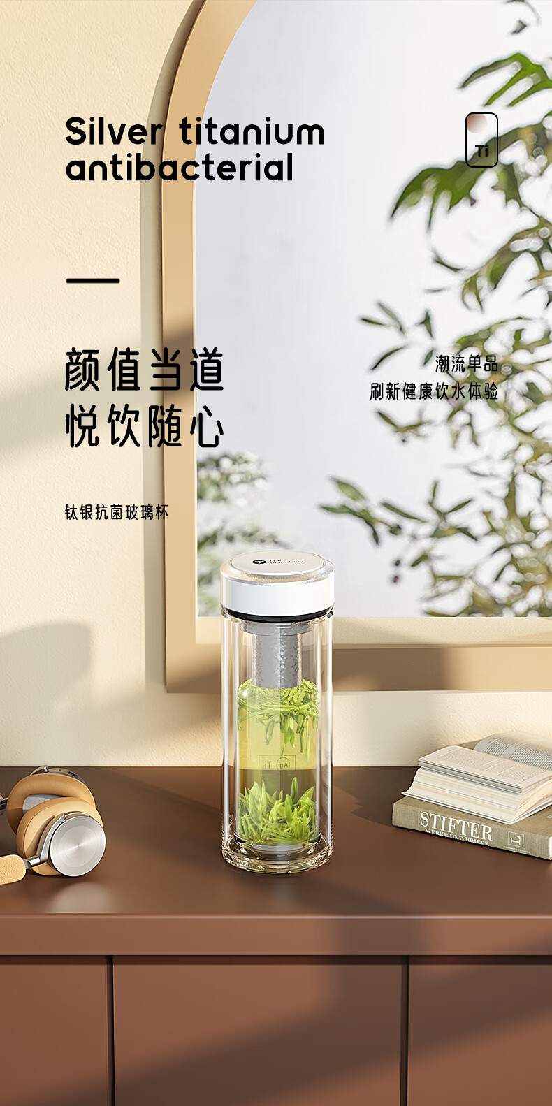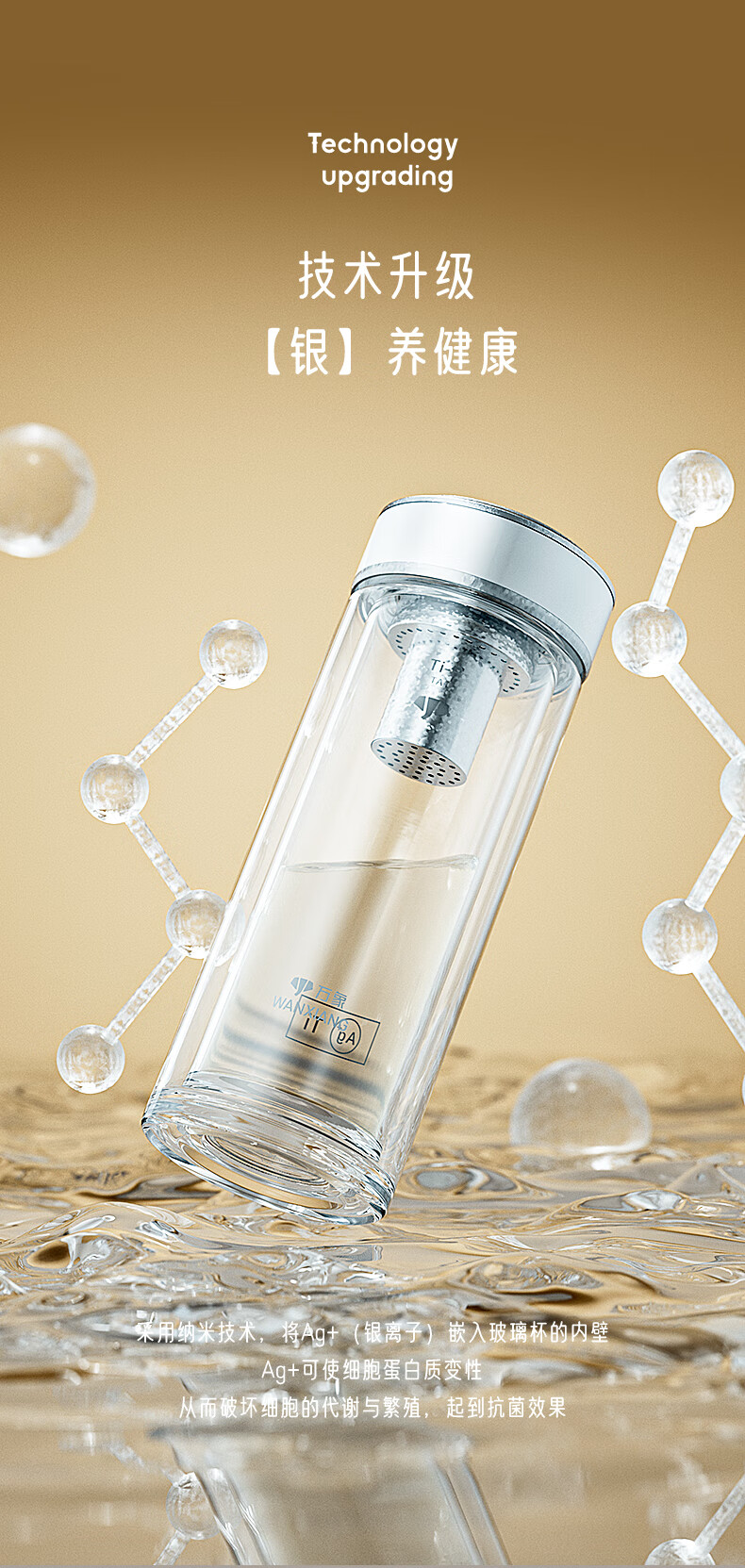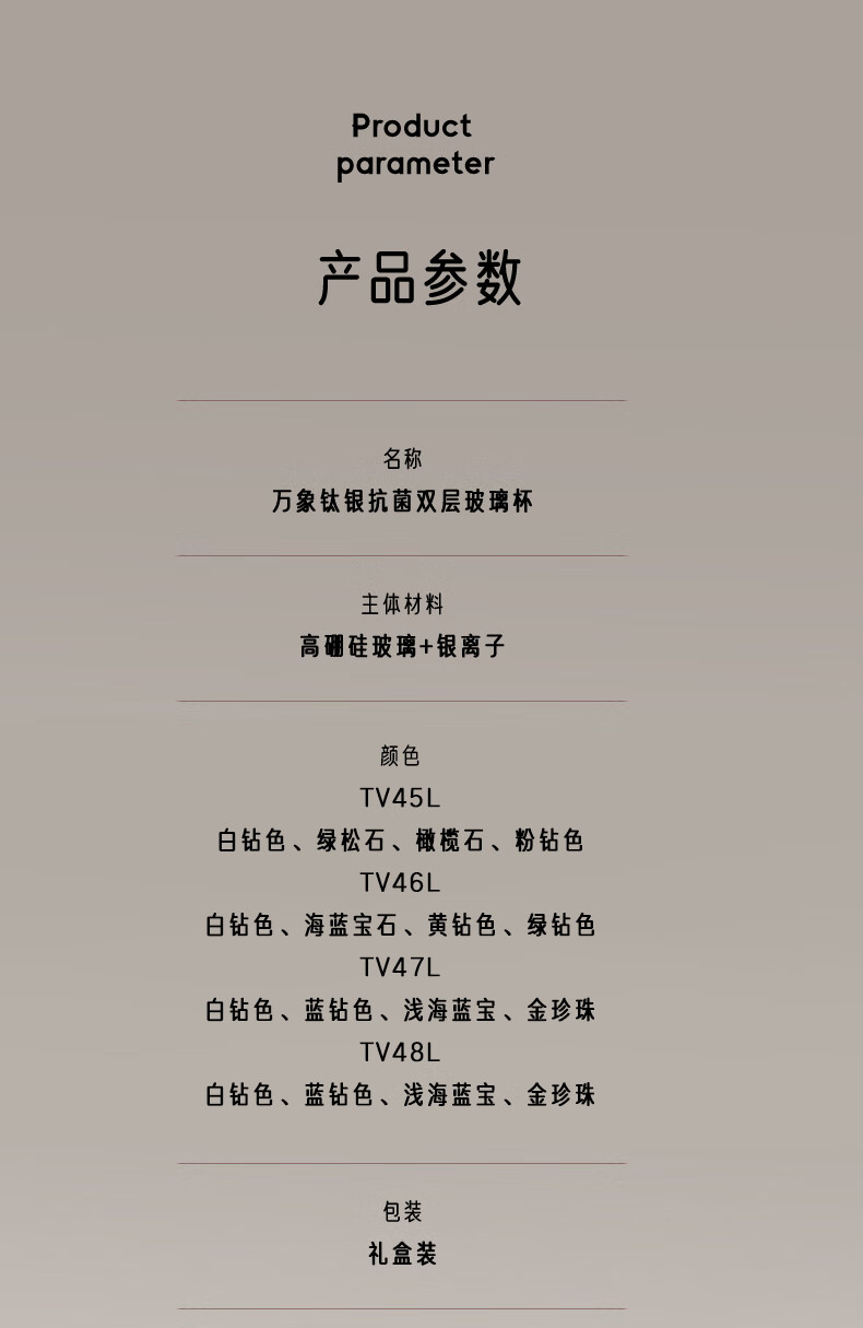商品名称:万象 钛银抗菌双层玻璃杯 200ml TV45L