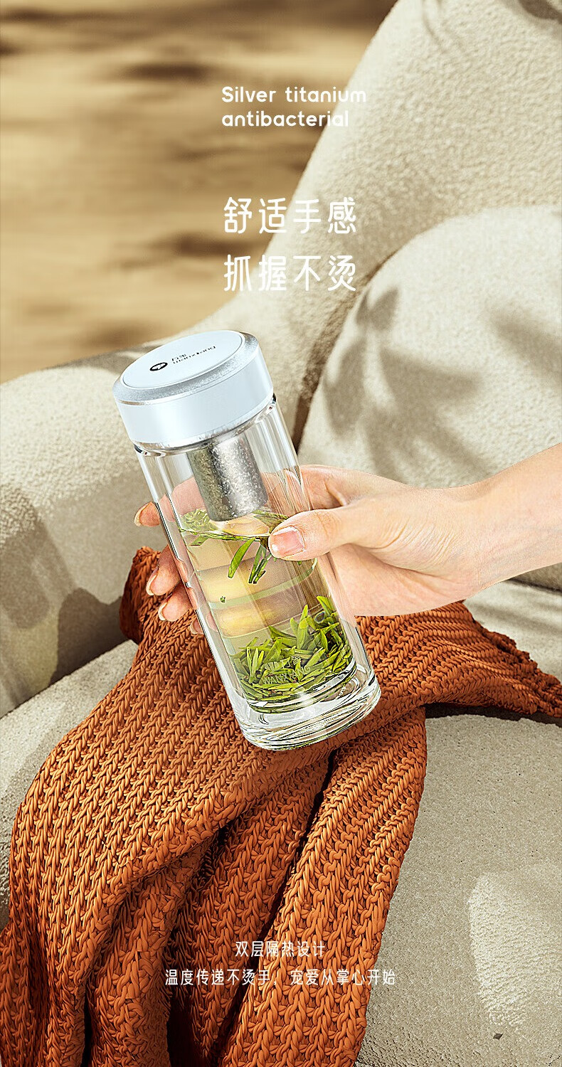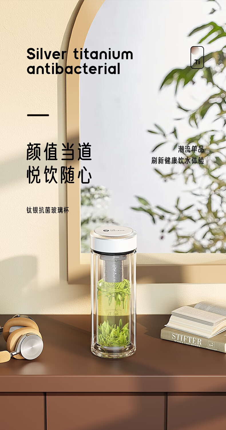 商品名称:万象 钛银抗菌双层玻璃杯 470ml TV48L