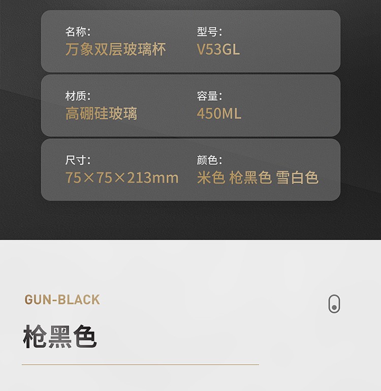 商品名称:万象 双层玻璃杯 450ml V53GL