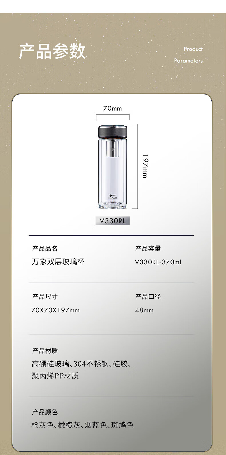 商品名称:万象 双层玻璃杯 370ml V330RL