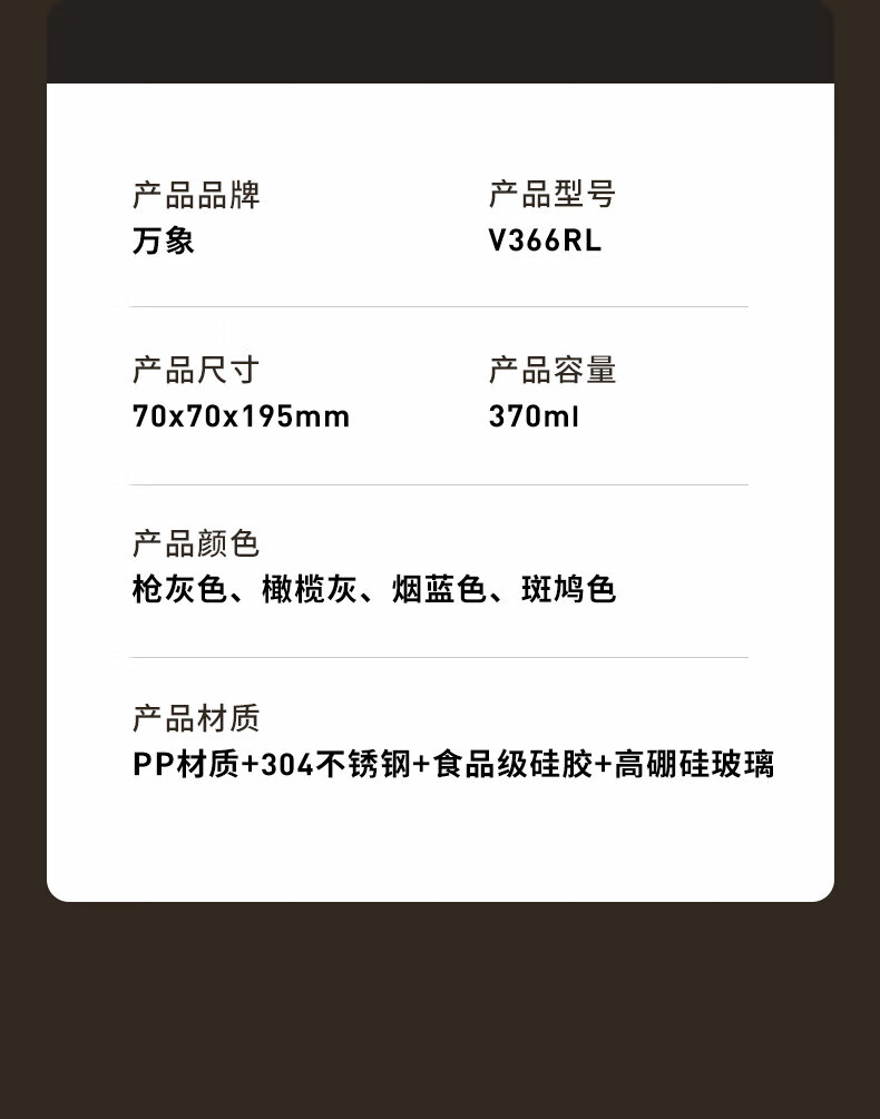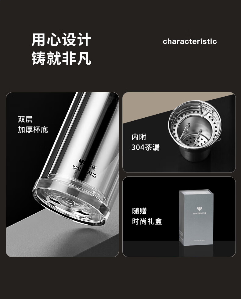 商品名称:万象 双层玻璃杯 370ml V366RL