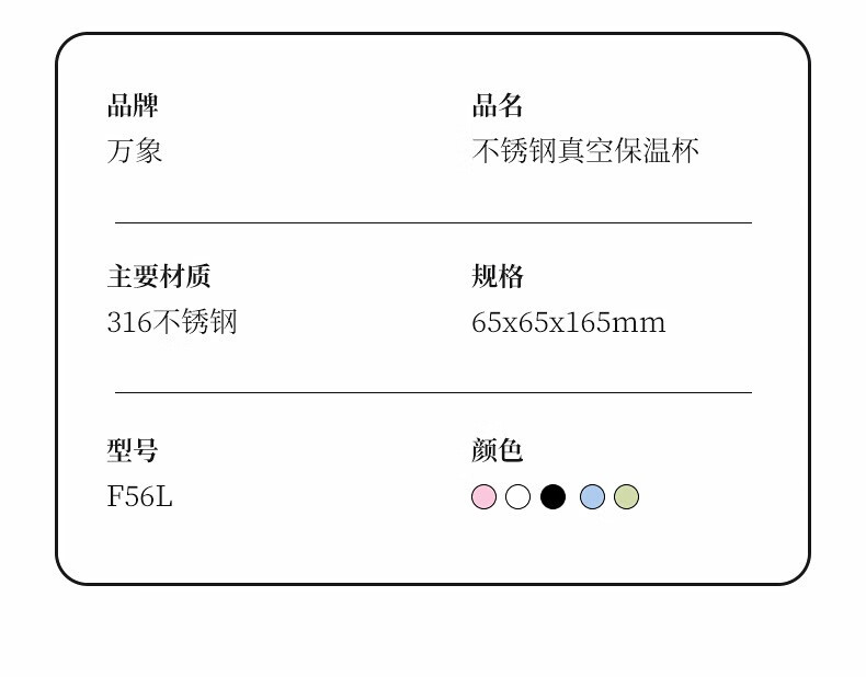 万象 不锈钢真空保温杯 300ml F56L