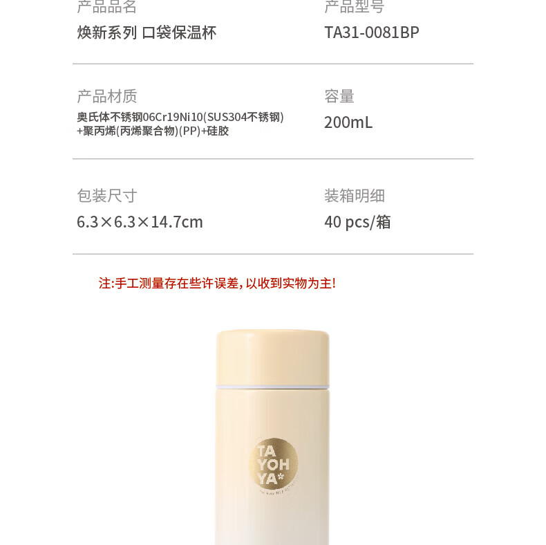 商品名称:多样屋 焕新系列 口袋保温杯 200mL TA31-0081BP