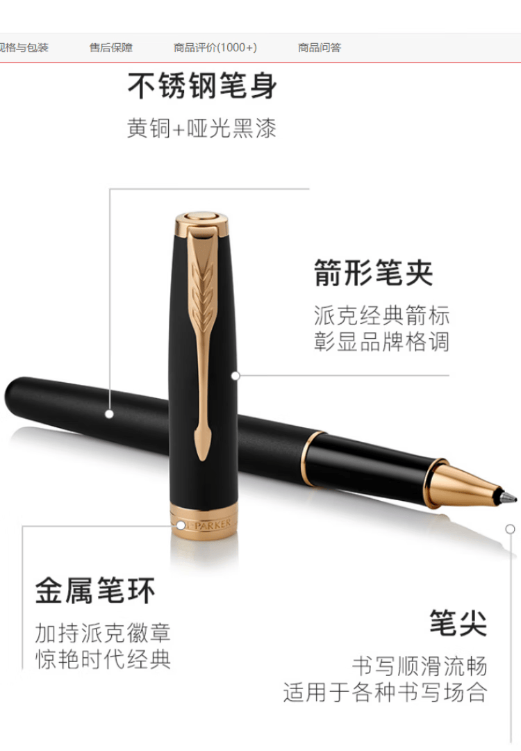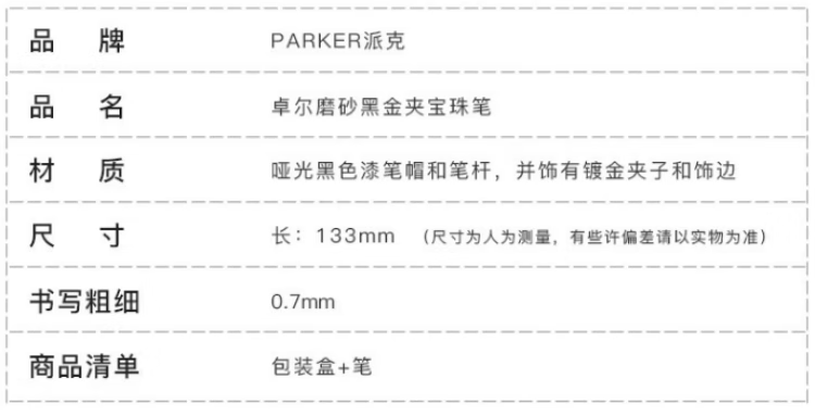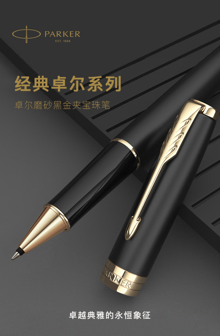 商品名称:派克(PARKER)2015卓尔磨砂黑杆金夹宝珠笔