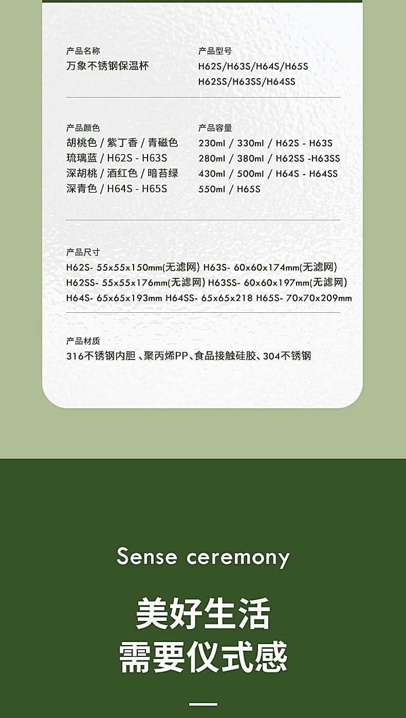 商品名称:万象 不锈钢真空保温杯 230ml H62S