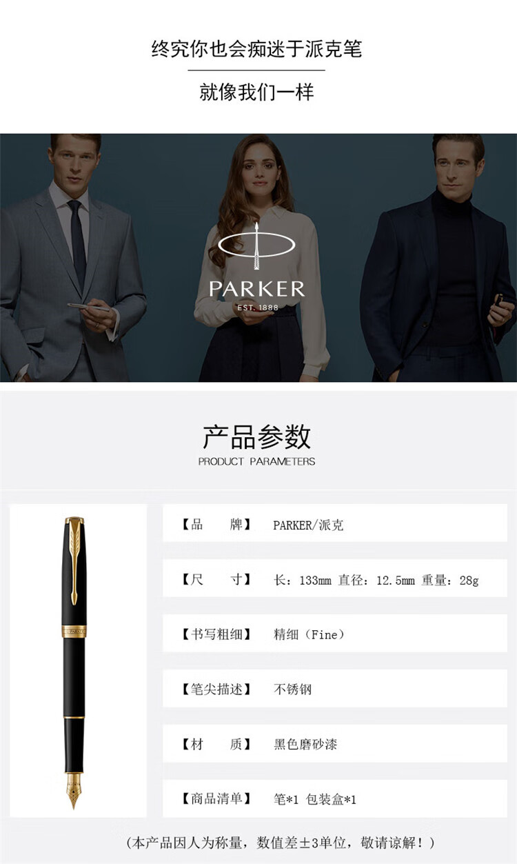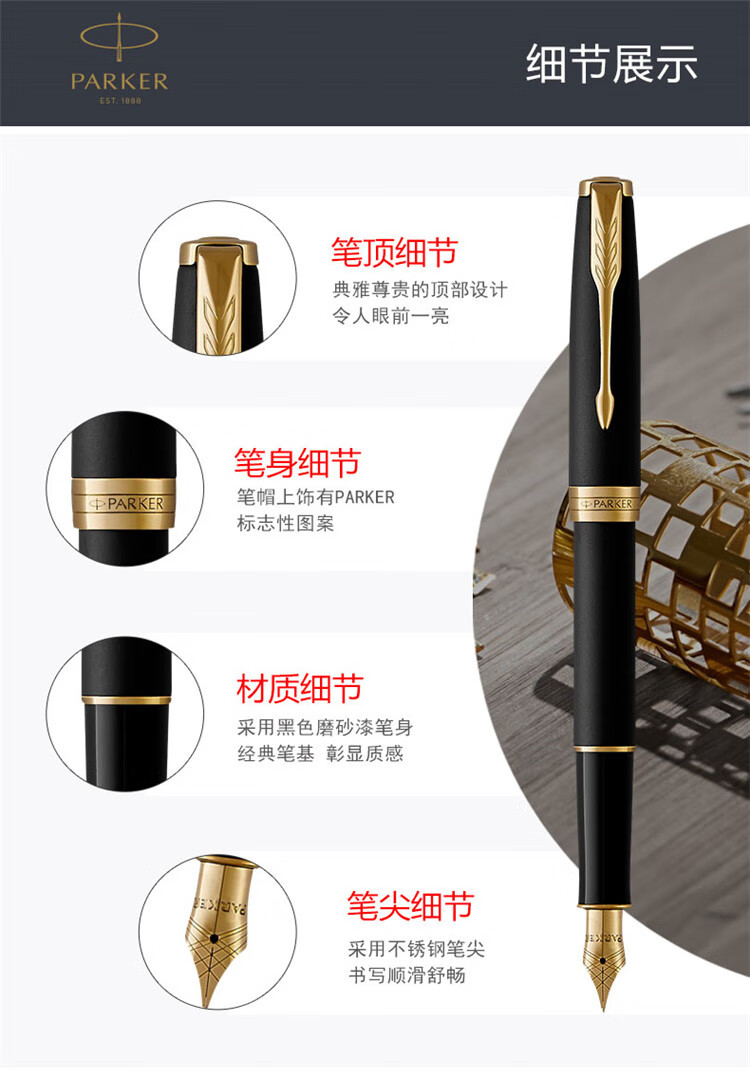 商品名称:派克 PARKER 2015卓尔磨砂黑杆金夹墨水笔