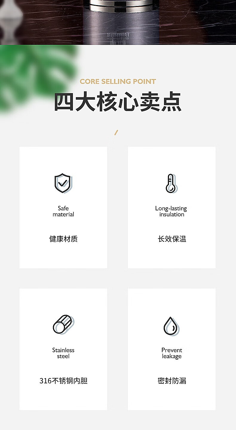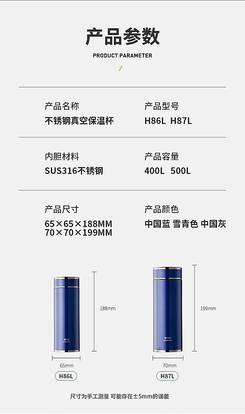 商品名称:万象 不锈钢真空保温杯 400ml H86L