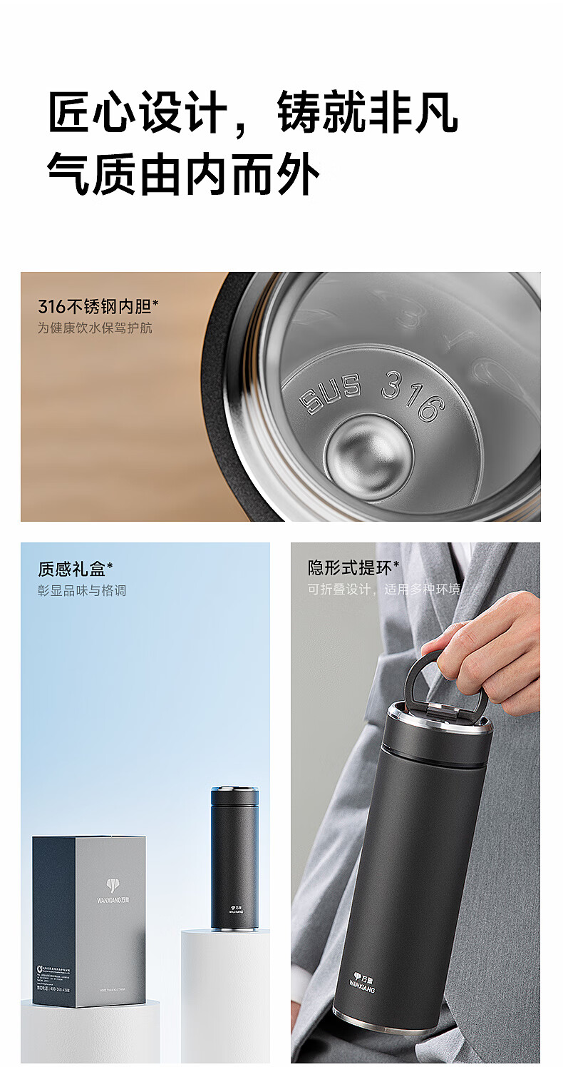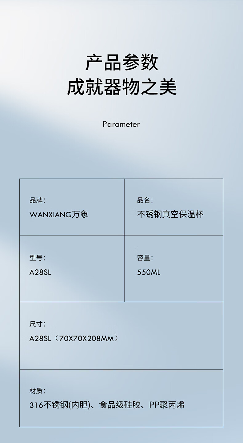 商品名称:万象 不锈钢真空保温杯 550ml A28SL