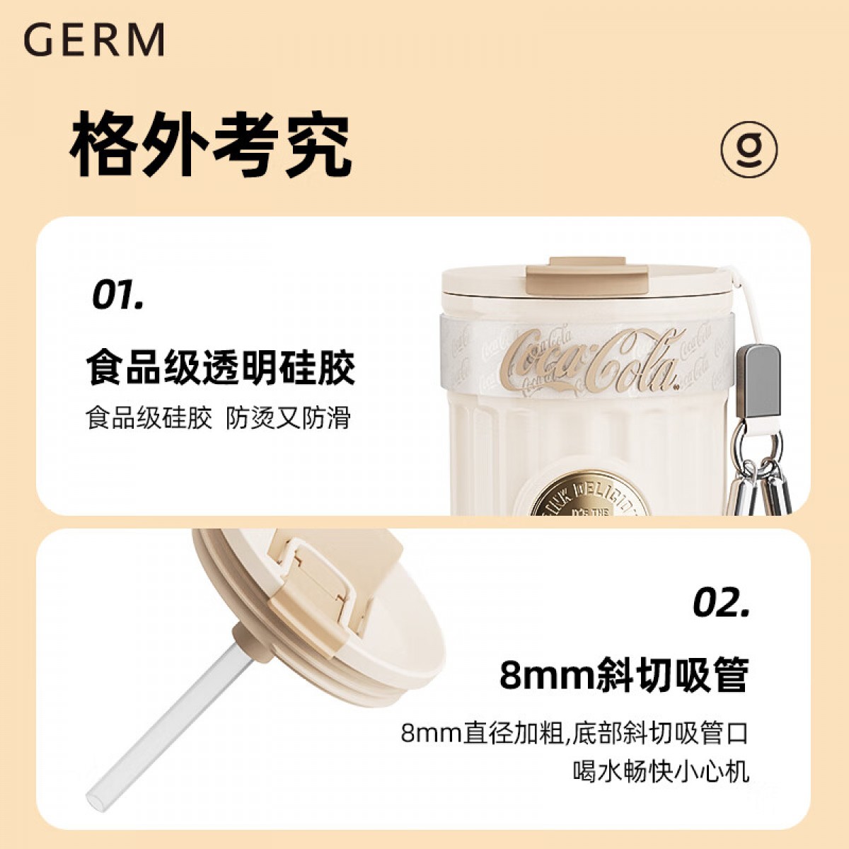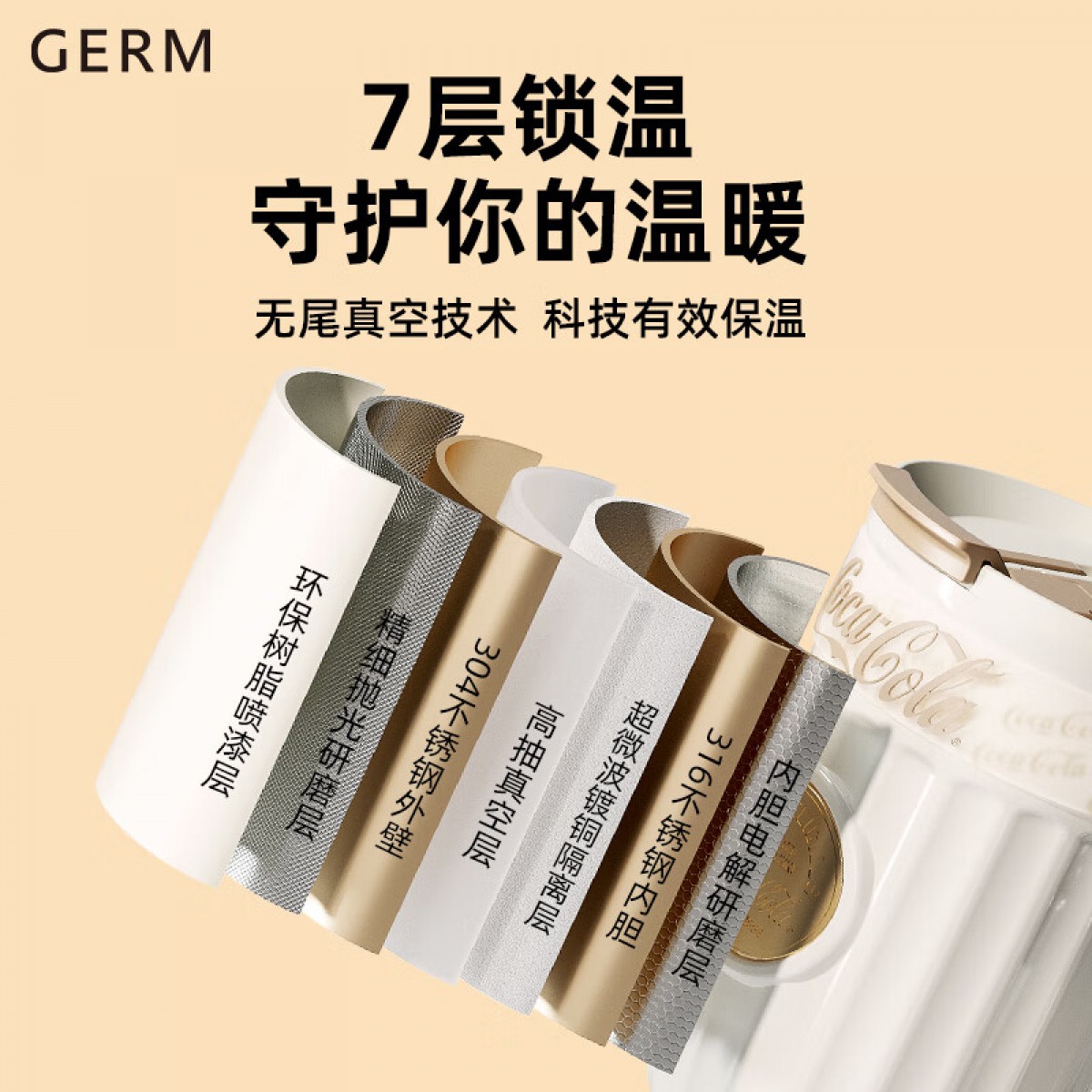 商品名称:格沵 可口可乐联名款徽章系列保温杯(雪融白) 500ml GE-CK23AW-B66