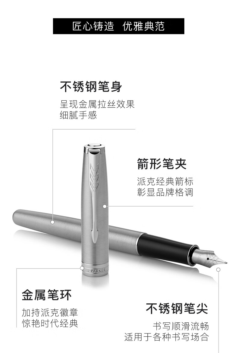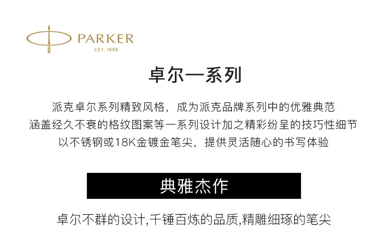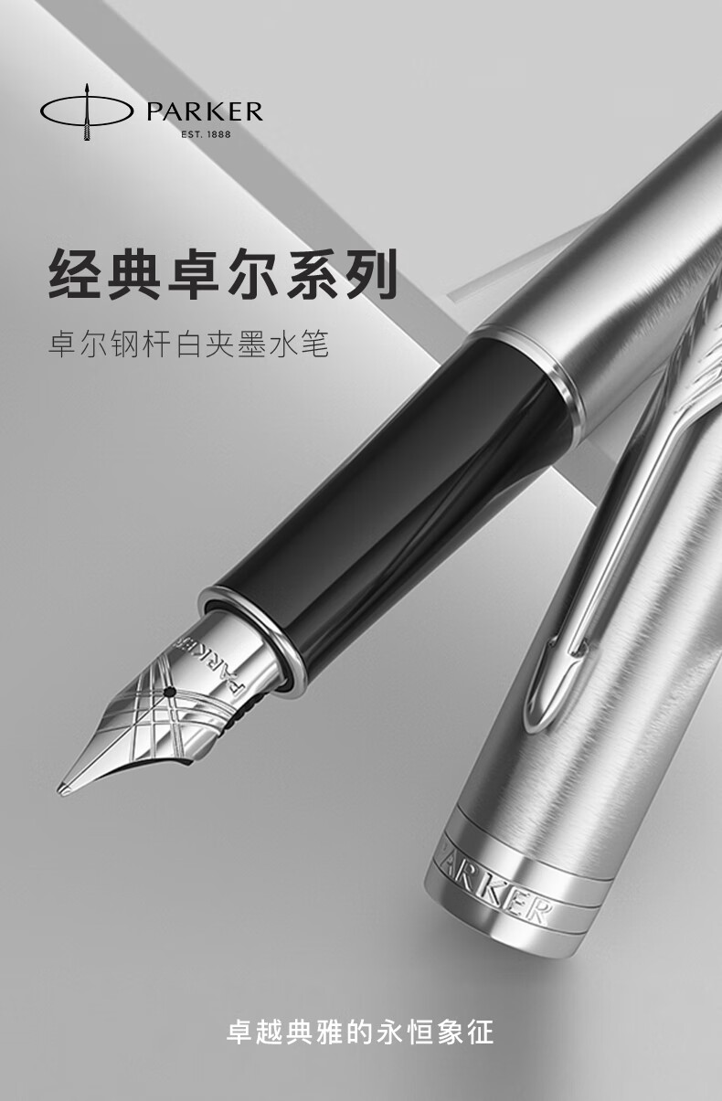 派克(PARKER)2015卓尔钢杆白夹墨水笔