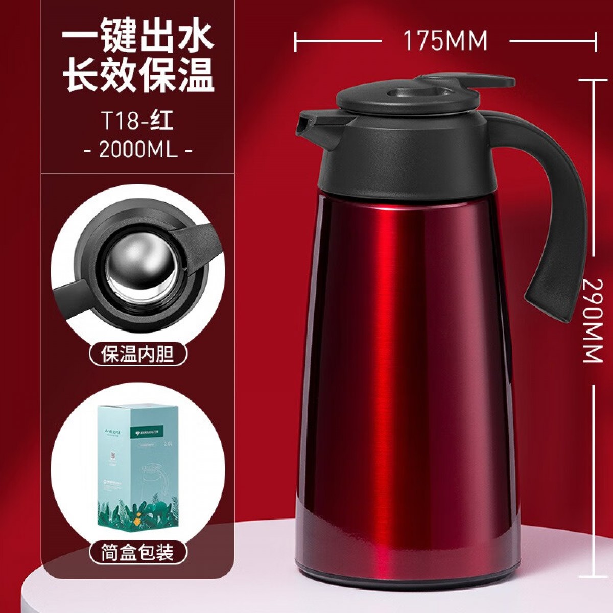 万象 不锈钢真空保温壶 2000ml T18