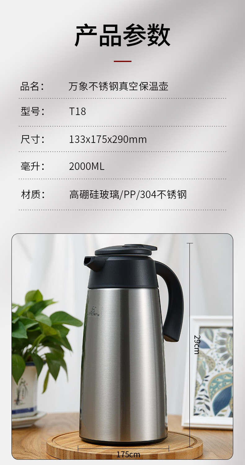商品名称:万象 不锈钢真空保温壶 2000ml T18