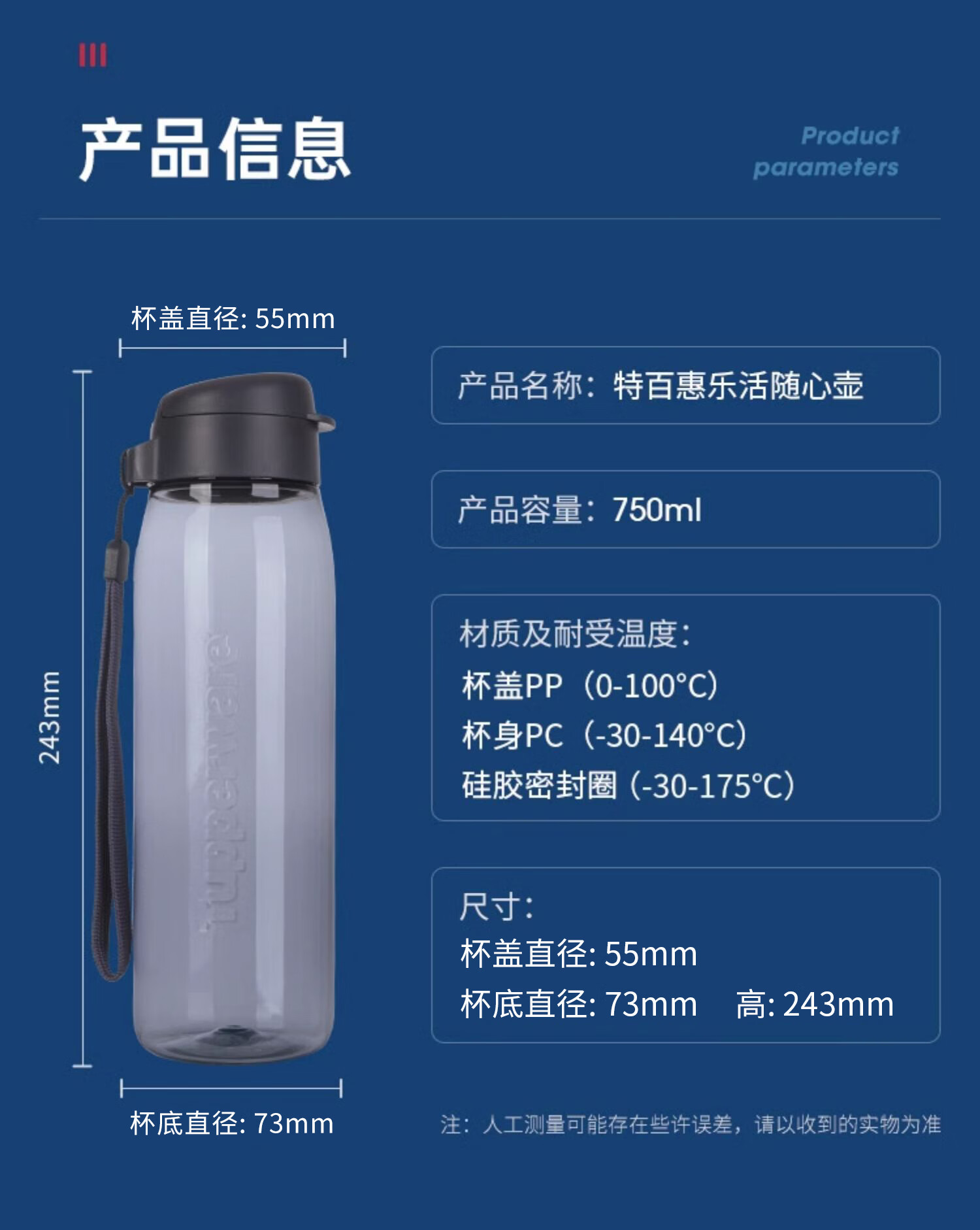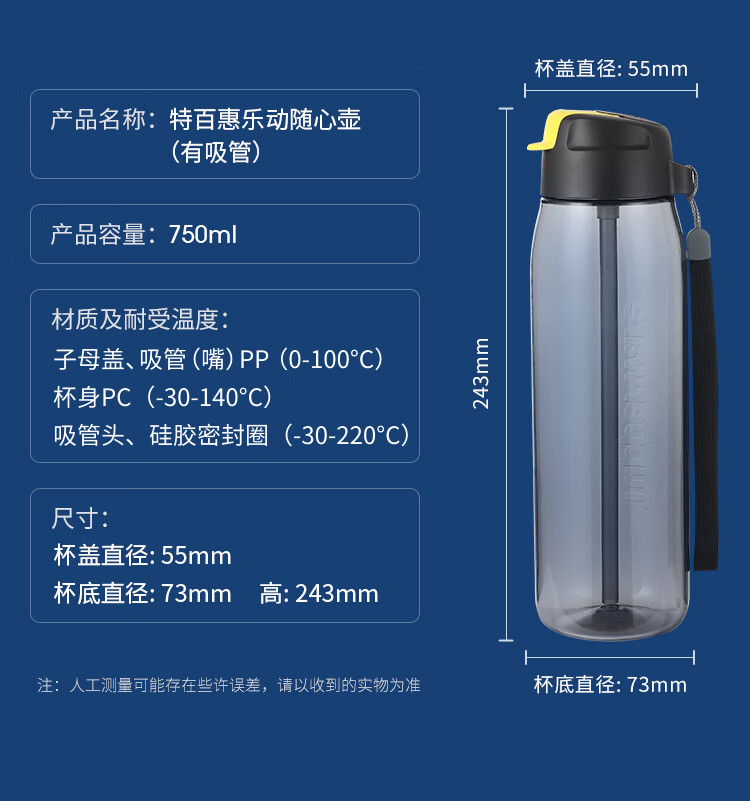 产品尺寸 :杯盖直径:55mm; 杯底直径:73mm;高:243mm