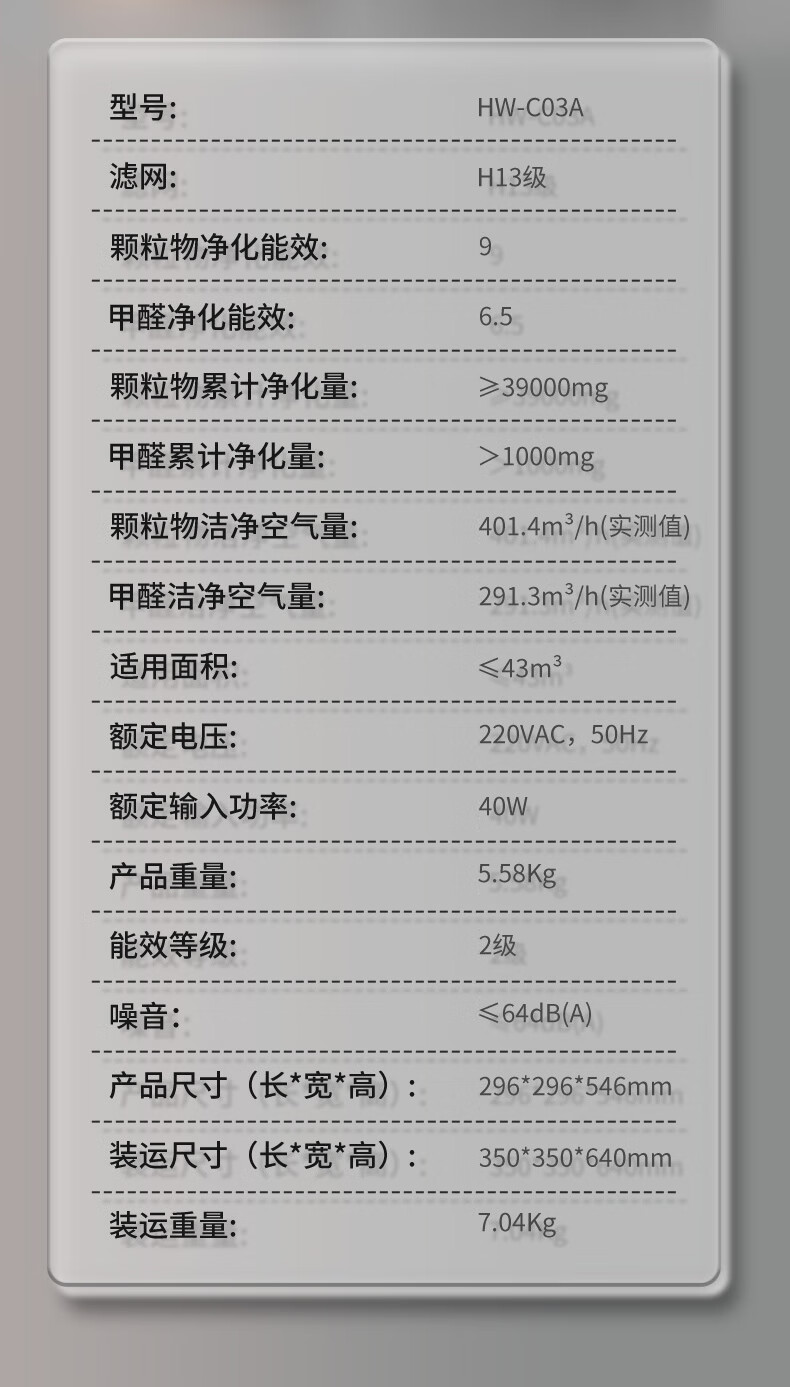 商品名称:霍尼韦尔(Honeywell)空气净化器 HW-C03A