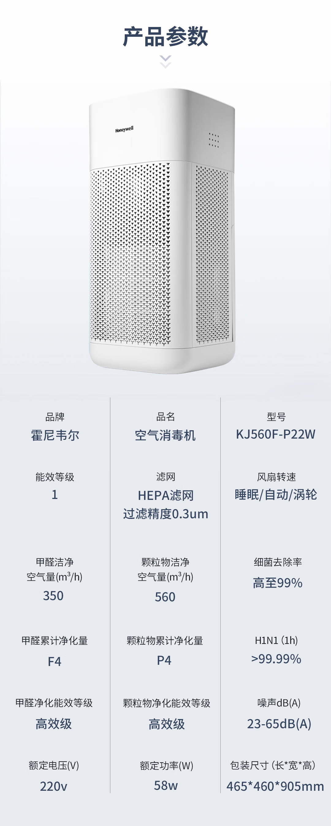 商品名称:霍尼韦尔(honeywell)空气消毒机 KJ560F-P22W