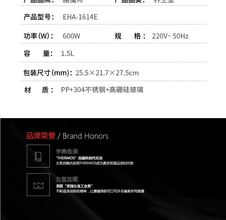 商品名称:膳魔师(THERMOS)养生壶 1.5L EHA-1614E