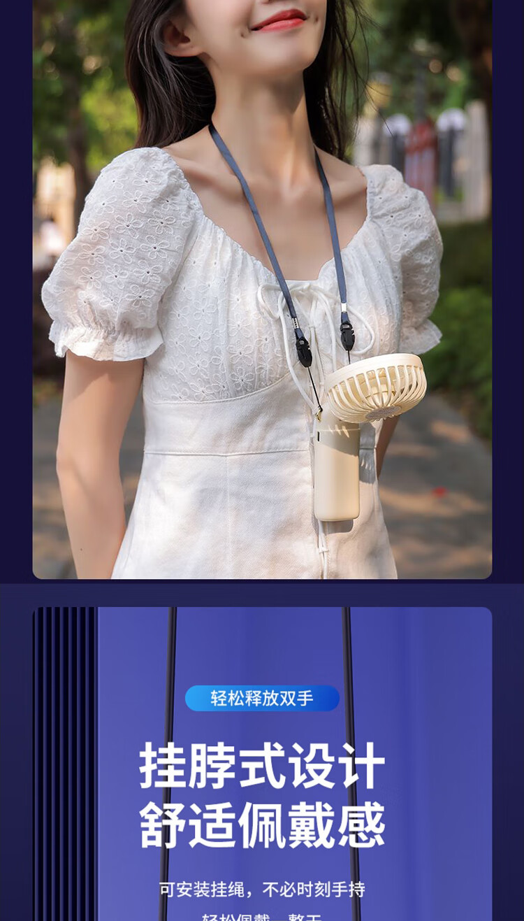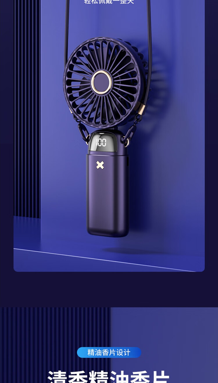 商品名称:驰曼通 手持香薰折叠挂脖风扇(送香薰片) 5W