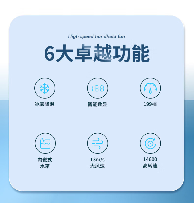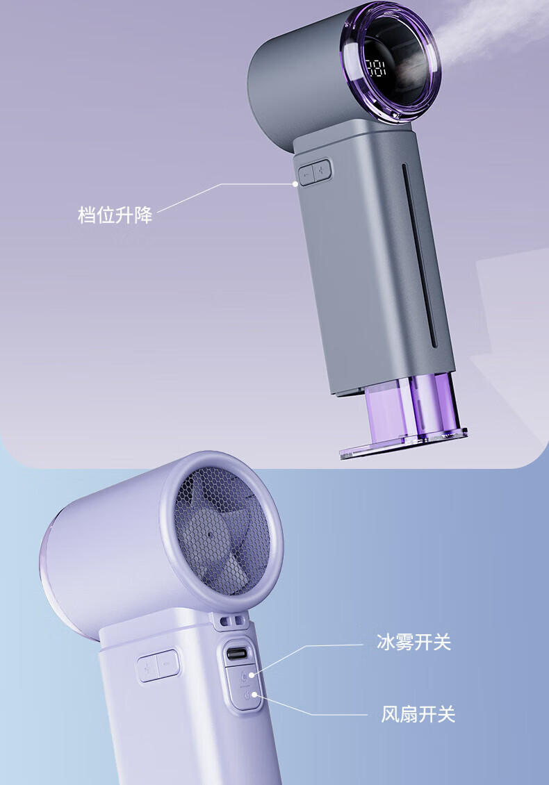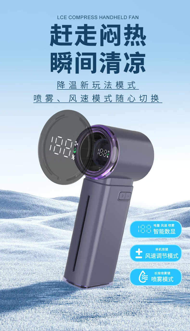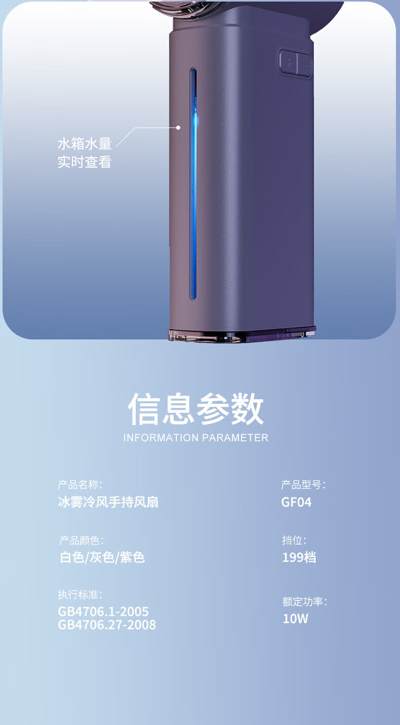 商品名称:驰曼通 199档手持冰雾高速风扇 3500mah GF04