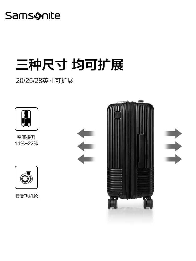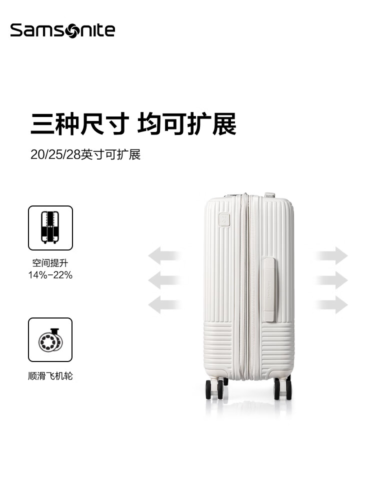 新秀丽(Samsonite)可扩展四轮拉杆箱-55/20 20英寸 HK6*05001(象牙白)/HK6*69001(哑光黑)