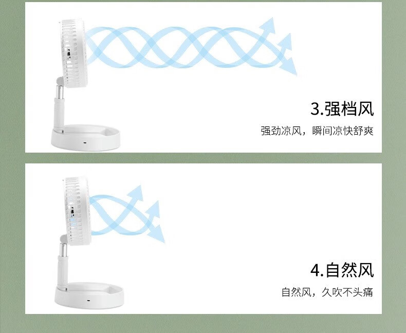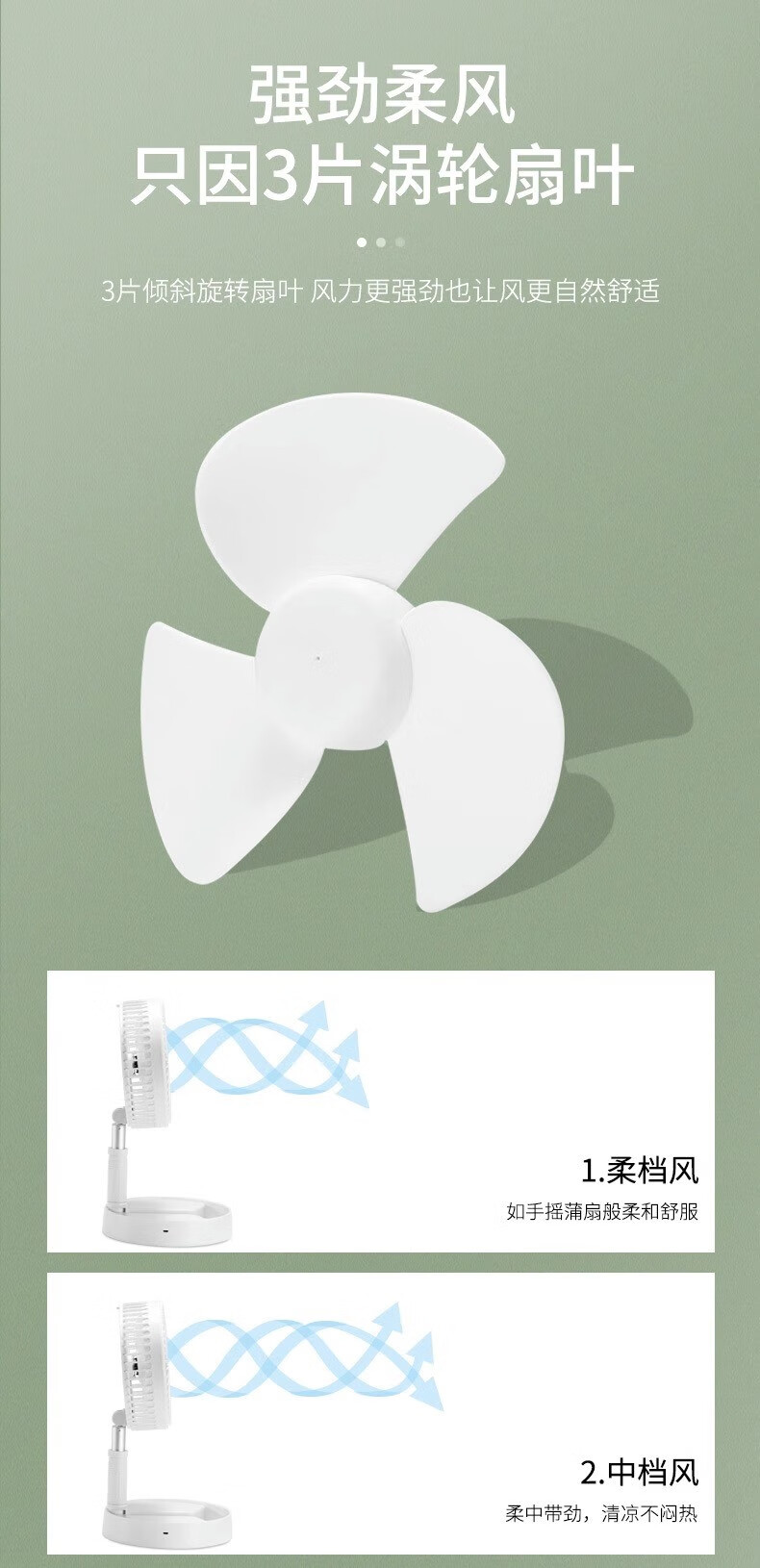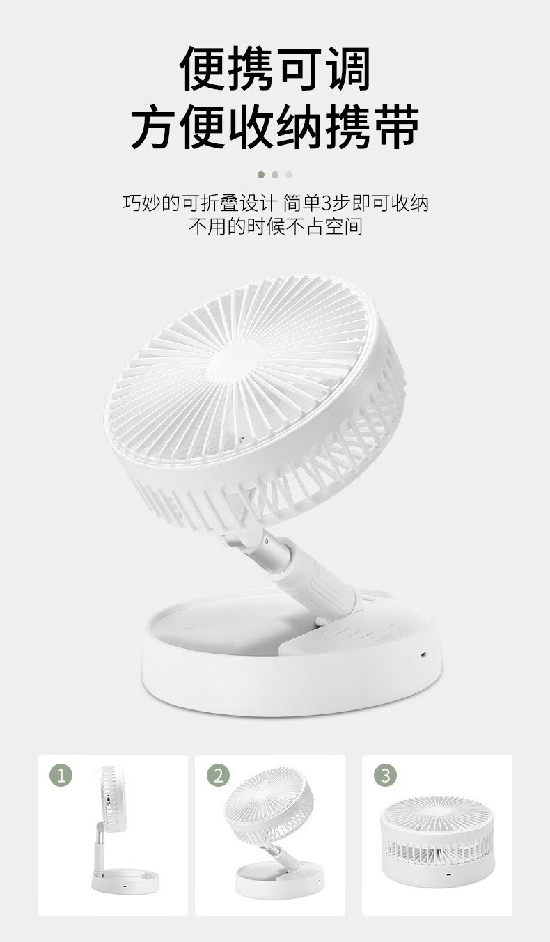 商品名称:驰曼通 伸缩折叠桌面落地风扇拉杆伸 3600mah K18