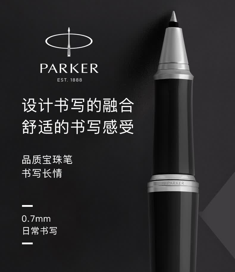 商品名称:派克(PARKER)2015都市纯黑丽雅白夹宝珠笔