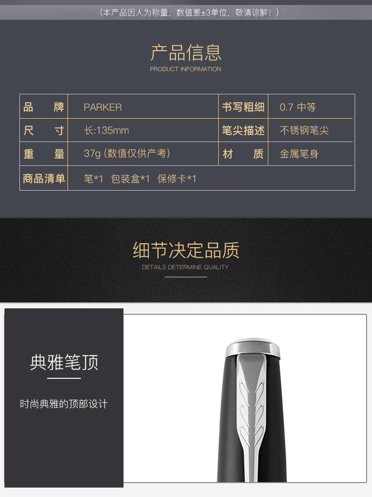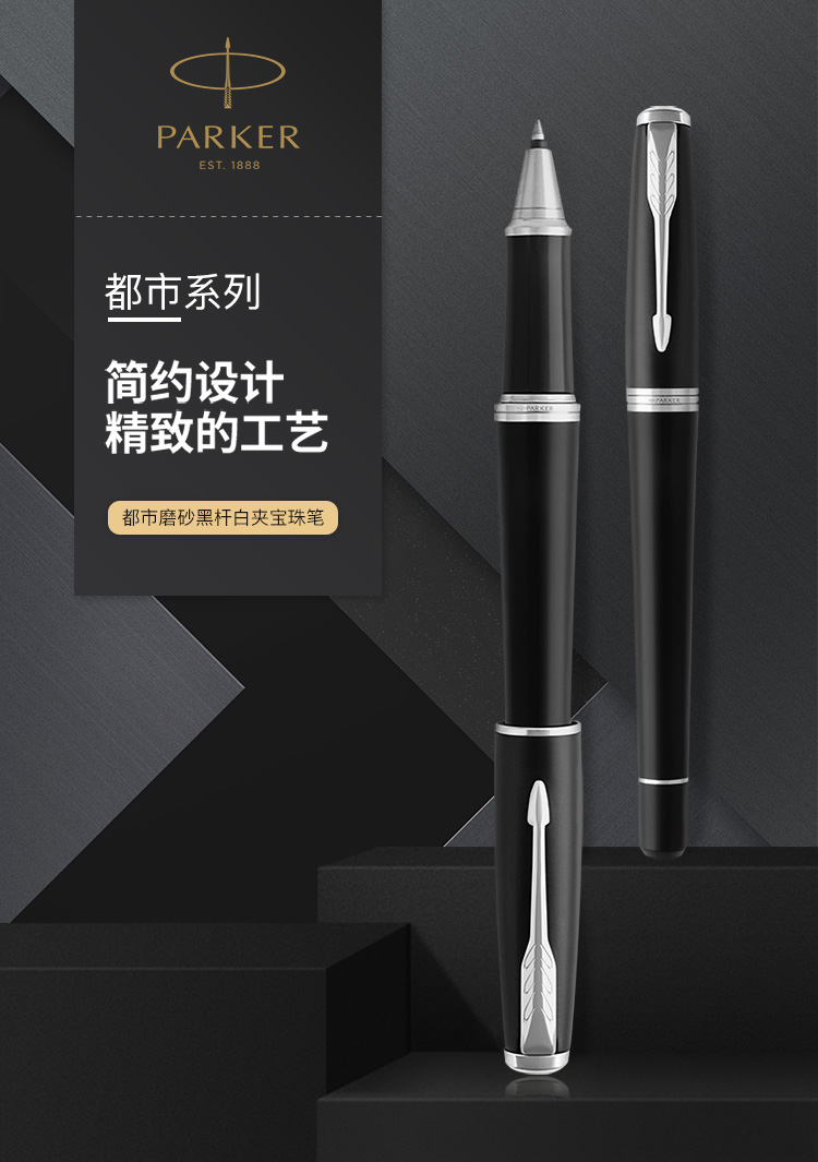 商品名称:派克(PARKER)2015都市磨砂黑杆白夹宝珠笔