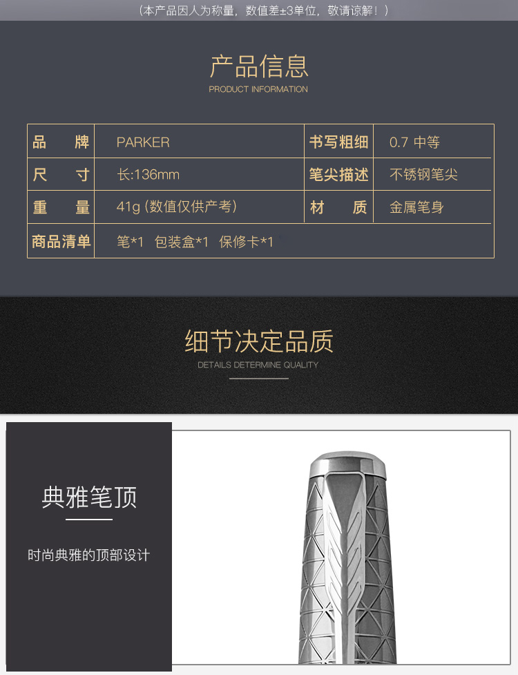 商品名称:派克(PARKER)2015都市简影白夹宝珠笔