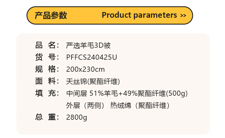 商品名称:大嘴猴 严选羊毛3D被 200x230cm 2800g PFFCS240425U