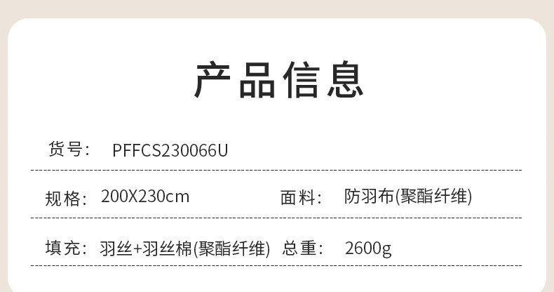 填充物净重(单被) :2600g