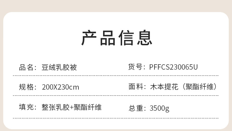 商品名称:大嘴猴 豆绒乳胶被 200×230cm 3500g PFFCS230065U