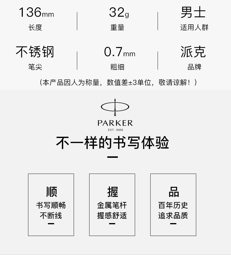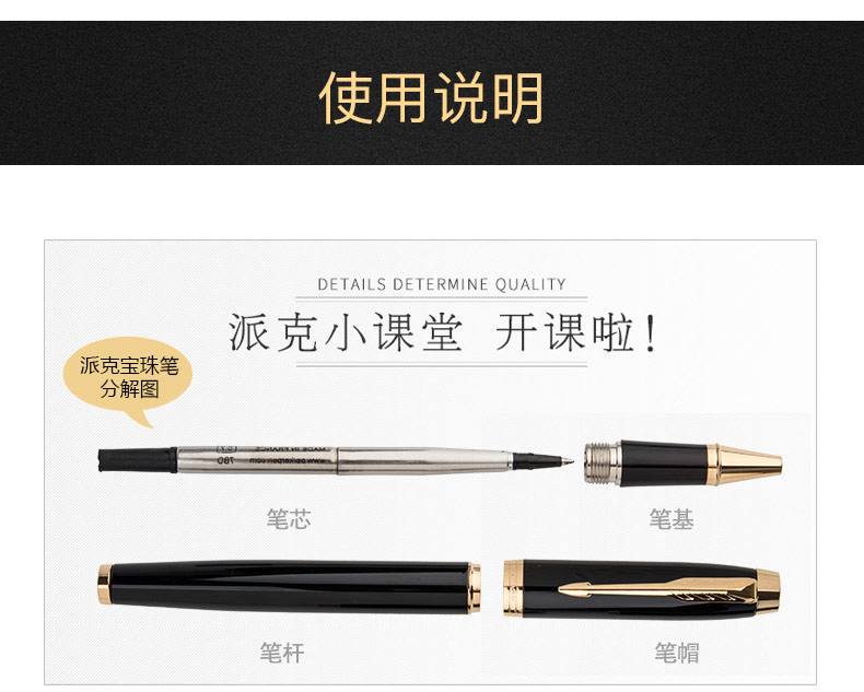 商品名称:派克(PARKER)2015IM纯黑丽雅金夹宝珠笔