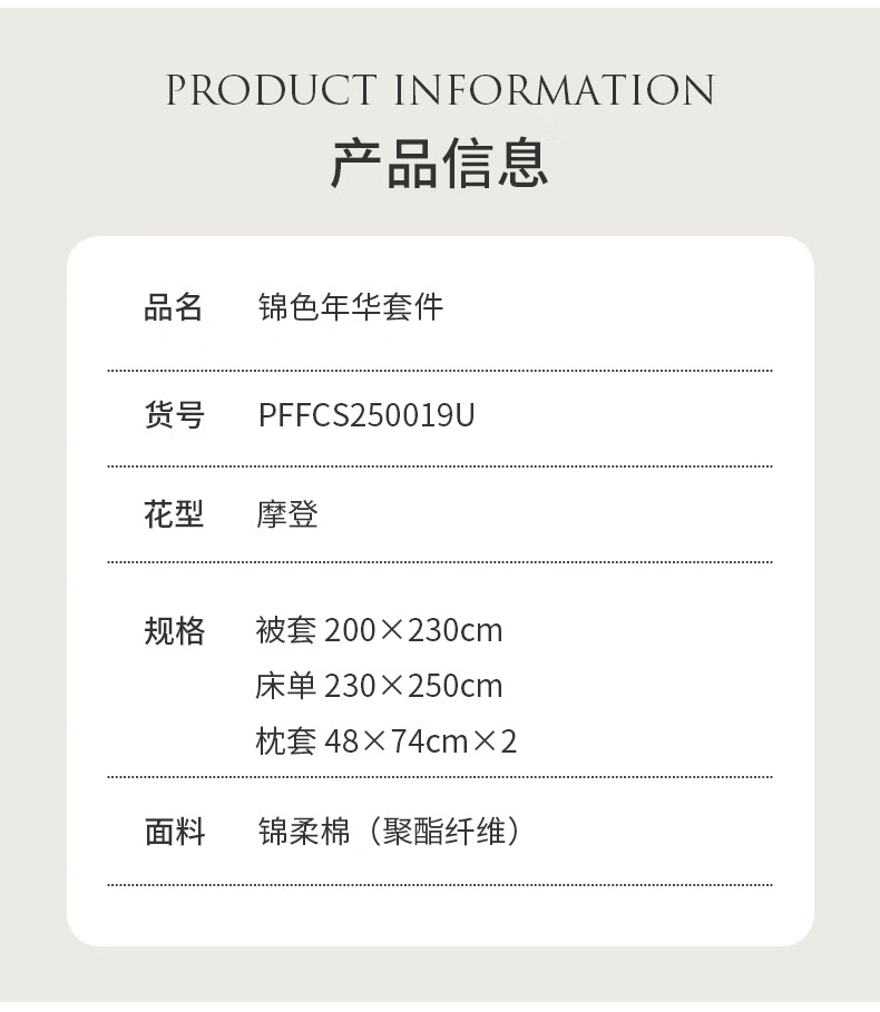 商品名称:大嘴猴 锦色年华套件 200×230cm PFFCS250018U(时尚)/PFFCS250019U(摩登)