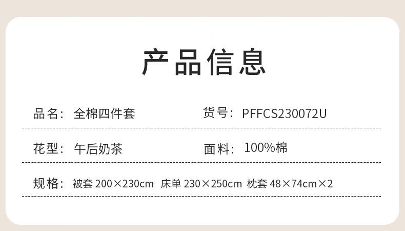 商品名称:大嘴猴 全棉四件套 200×230cm PFFCS230072U(旋转木马)/PFFCS230072U(午后奶茶)