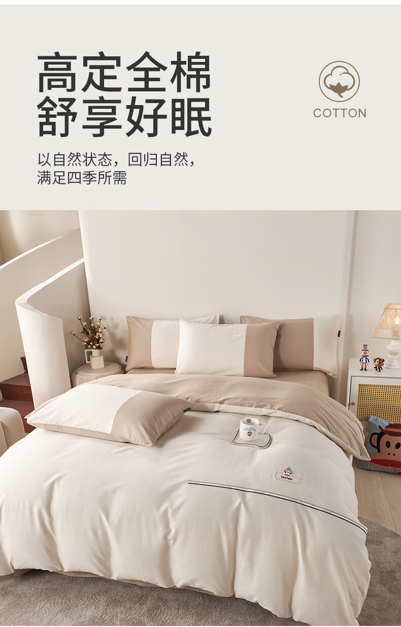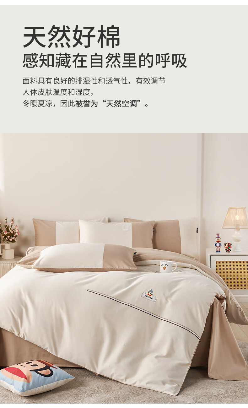 大嘴猴 全棉臻密套件 200×230cm PFFCS250022U(棉韵-米杏)/PFFCS250023U(棉韵-奢灰)/PFFCS250024U(棉韵-雪粉)