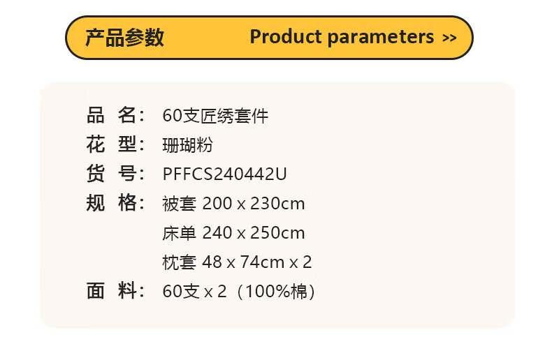 商品名称:大嘴猴 60支匠绣套件 200x230cm PFFCS240441U(香槟金)/PFFCS240442U(珊瑚粉)