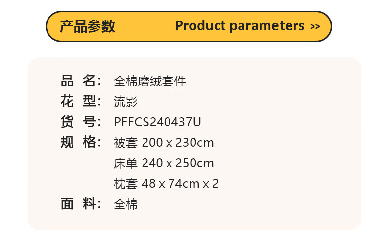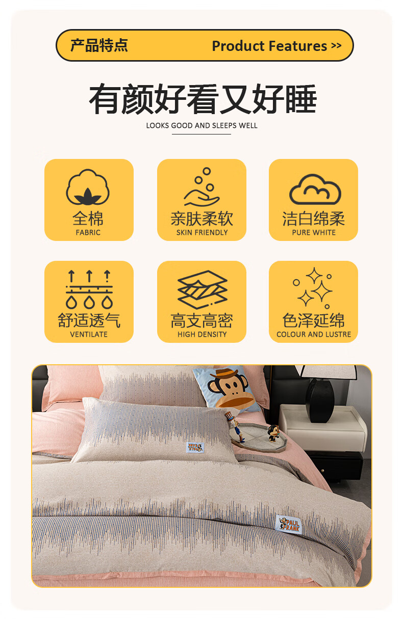 商品名称:大嘴猴 全棉磨绒套件 200x230cm PFFCS240437U(星闪)/PFFCS240438U(流影)