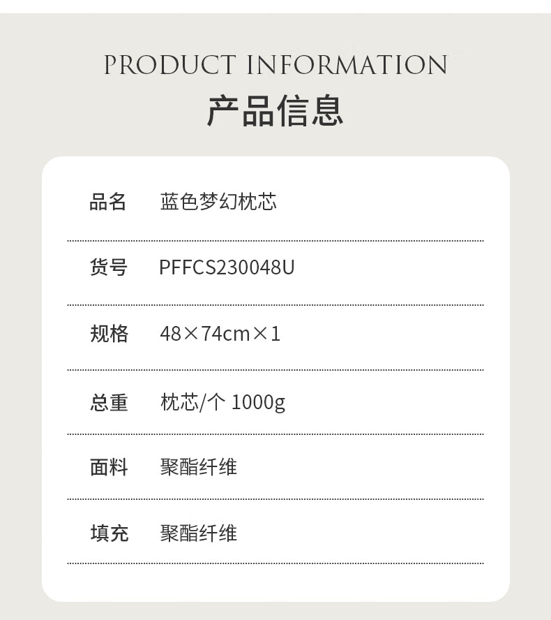 商品名称:大嘴猴 蓝色梦幻枕芯 48×74cm×1 PFFCS230048U