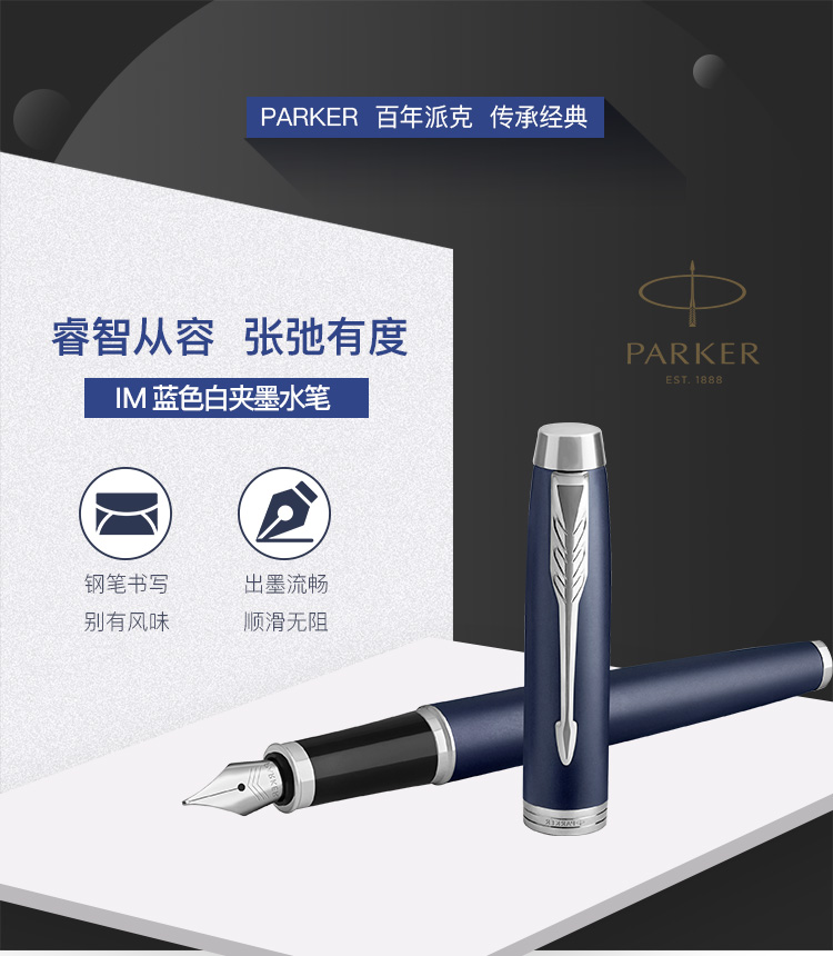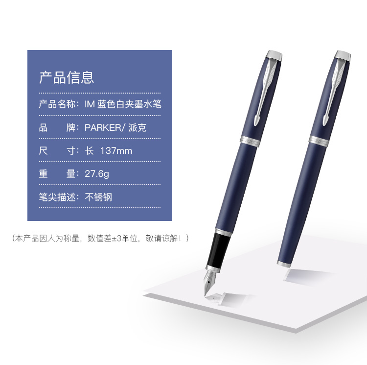 商品名称:派克(PARKER)2015IM蓝色白夹墨水笔