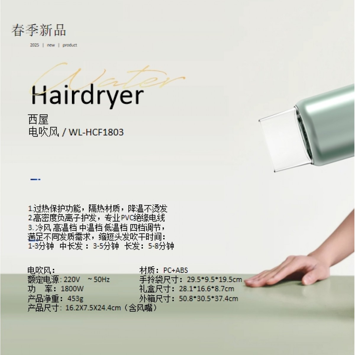 商品名称:西屋 电吹风 1800W WL-HCF1803