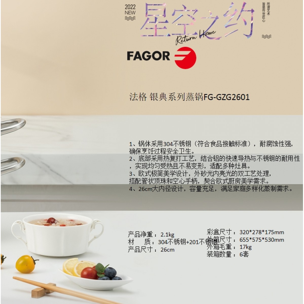 商品名称:法格 银典系列蒸锅 26cm FG-GZG2601