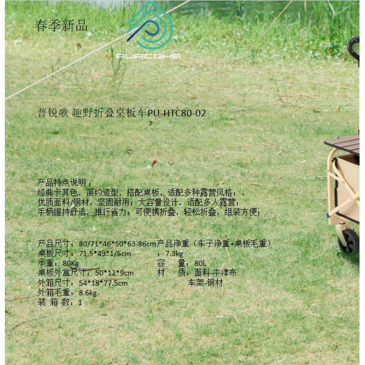 商品名称:普瑞歌 趣野折叠桌板车 80L PU-HTC80-02