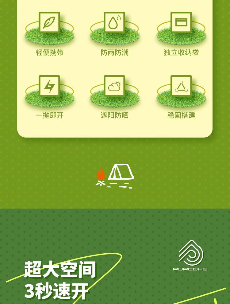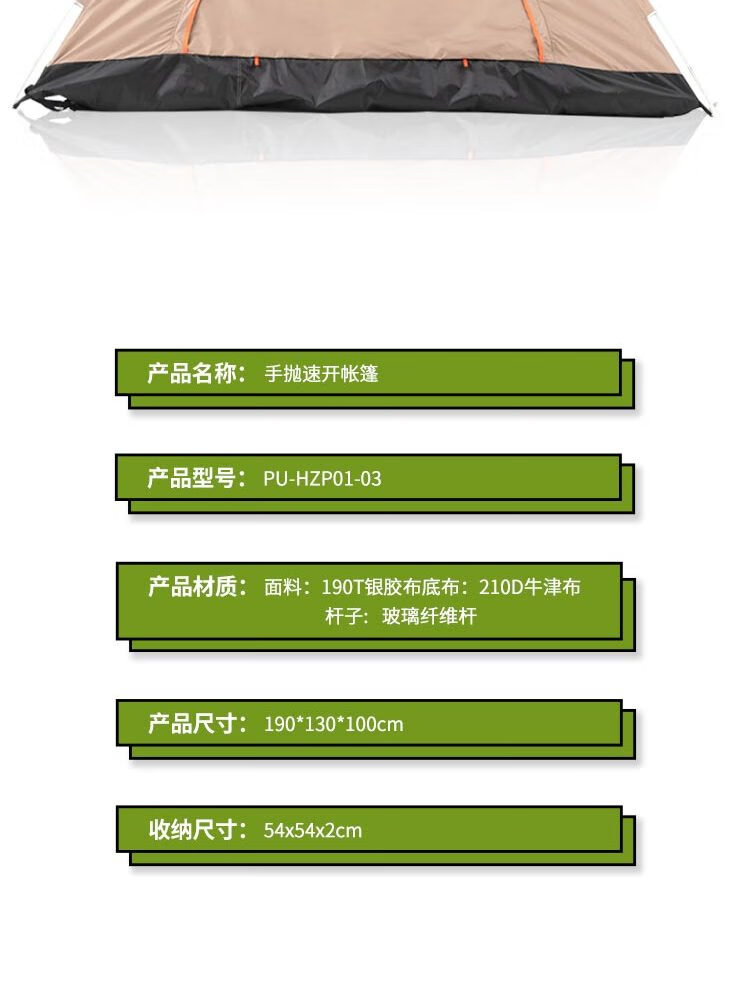 商品名称:普瑞歌 手抛速开帐篷 190*130*100cm PU-HZP01-03