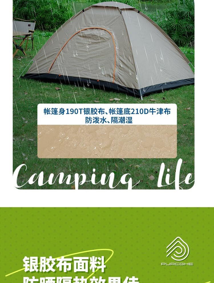 普瑞歌 手抛速开帐篷 190*130*100cm PU-HZP01-03