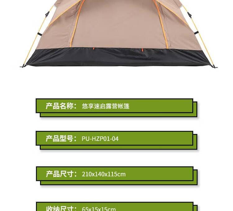 商品名称:普瑞歌 悠享速启露营帐篷 210x140x115cm PU-HZP01-04