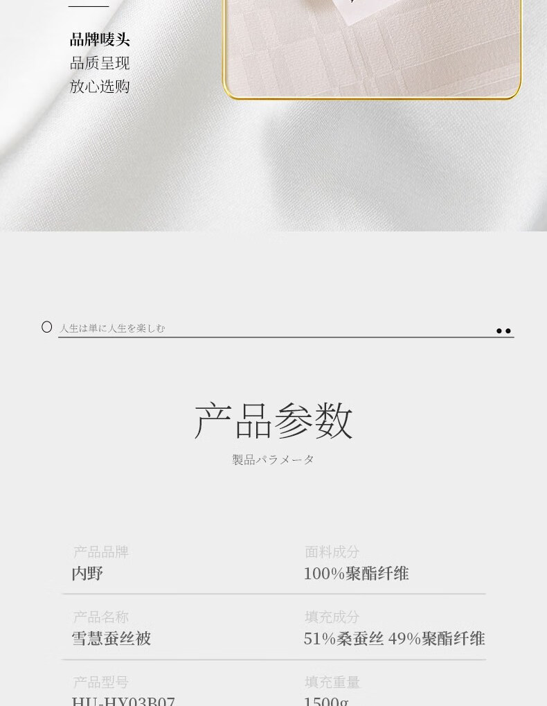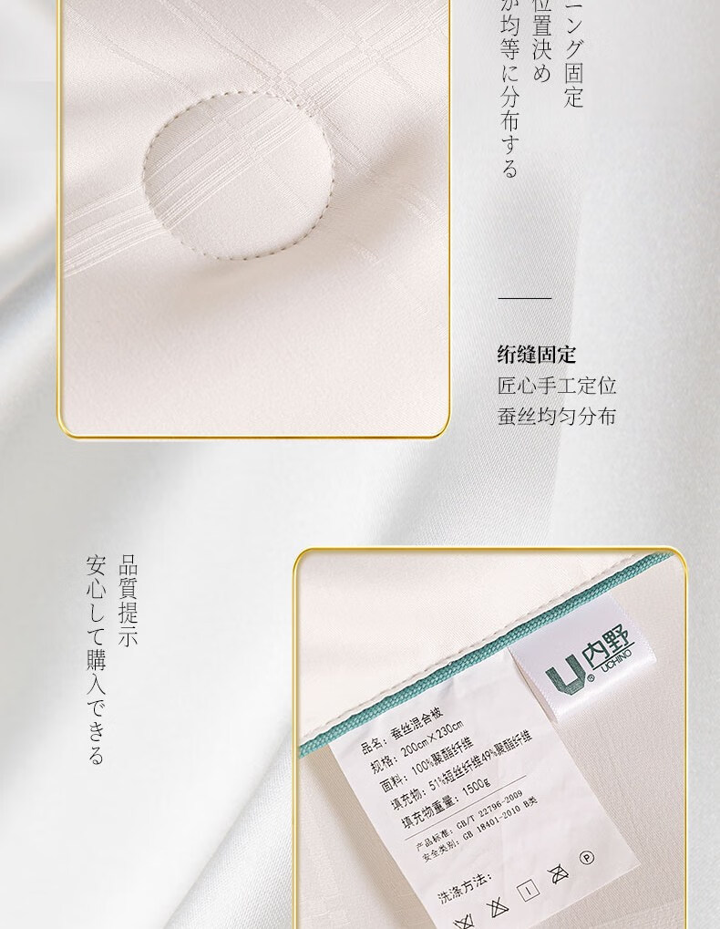 商品名称:内野 雪慧蚕丝被 1500g 200×230cm HU-HY03B07