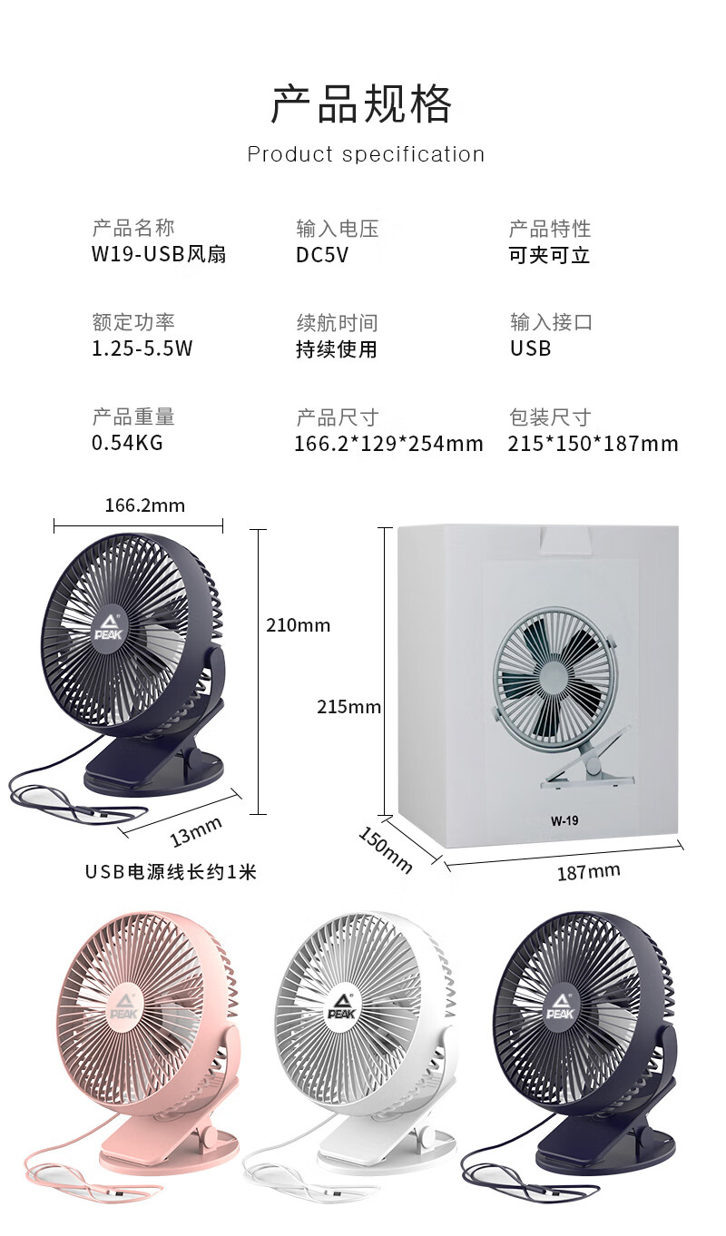 商品名称:匹克 6寸桌面两用USB风扇 YE34402